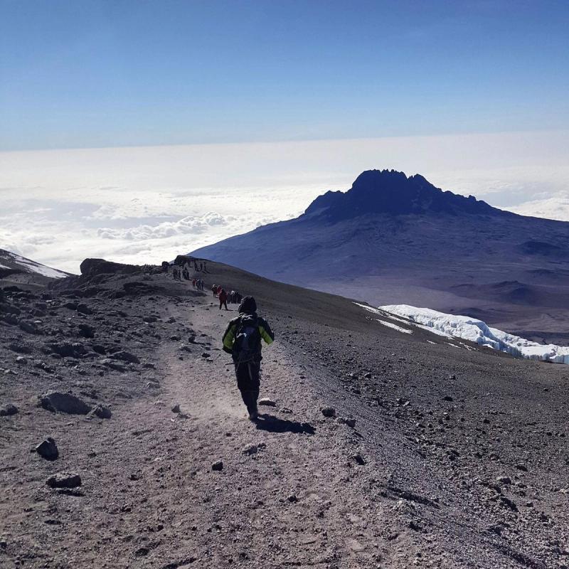 Mawenzi is on the east side of the mountain. Mawenzi’s cone is highly eroded, jagged, and precipitous and is cleft on the east and west by gorges. Mawenzi has semi-permanent ice patches and seasonal snow.